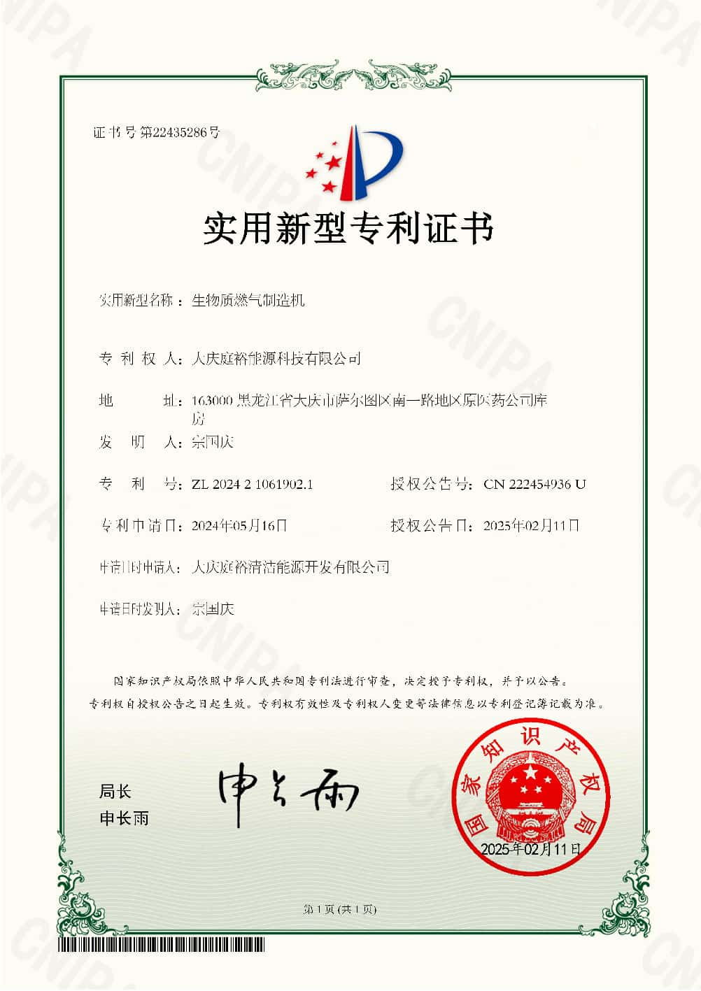 大庆庭裕清洁能源开发有限公司
